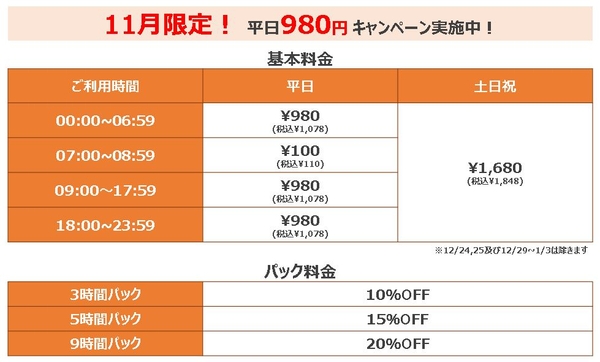 これまで最大1480円だった平日の料金を最大980円に期間限定で値下げ!