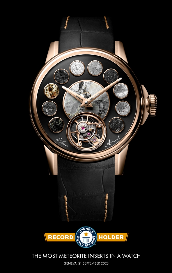 株式会社ジーエムインターナショナルが日本総代理店を務めるスイス高級時計ブランド LOUIS MOINET(ルイ・モネ)の『コスモポリス』が、最も多くの隕石(12種類)を使用した時計として、2023年9月21日にギネス世界記録に認定されました。こちらの時計は世界に1本のみのユニークピースです。