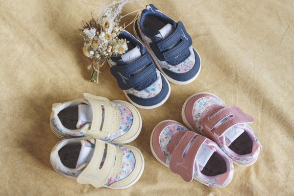 イフミーカランは、“かわいいをシェアする”というコンセプトの下、ママとお子様が共に納得するシューズを展開しています。人気の「wild flower series」は水彩画家の一栁綾乃さんのイラストを、タンネームにあしらい、リボンがポイントのデザインです。
