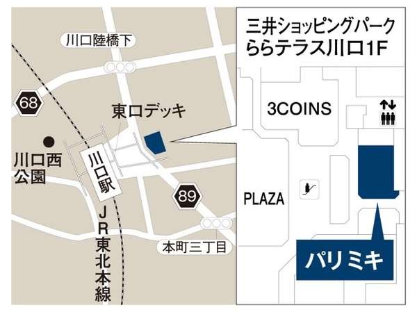 所在地:埼玉県川口市栄町3丁目5番1号三井ショッピングパーク ららテラス川口1階 1060