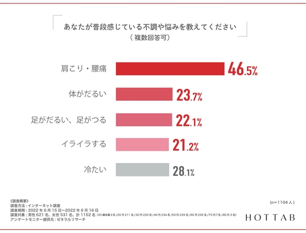 ・一般の方は肩こりや腰痛、だるさなどの何かしらの体の不調を感じていることがわかりました