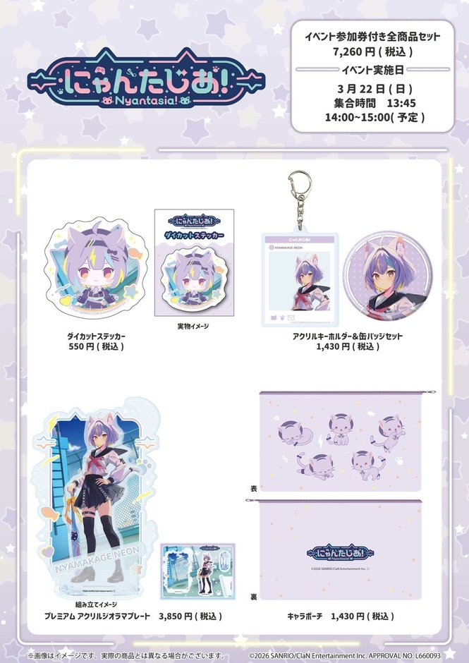 株式会社ClaN Entertainment(本社:東京都港区 代表取締役社⻑:⼤井 基⾏、以下ClaN)は、株式会社サンリオ(本社:東京都品川区)と共同で行うVTuberプロジェクト「にゃんたじあ!」に所属する「若魔影ネオン」が2月9日に誕生日を迎えたことを記念し、誕生日グッズの販売を行います。