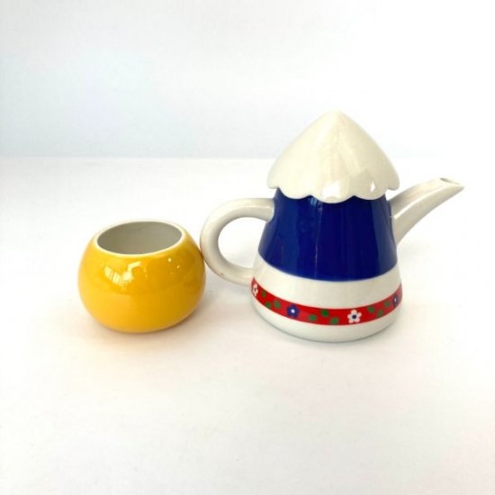 チロル少女なティーフォーワンです。これめちゃめちゃ可愛くないですか?ちょっとレトロ感があって飾ればあっという間にインテリアです。海外の民族衣装って可愛いですよね。ポットの下に描かれたお花もレトロで可愛い♪