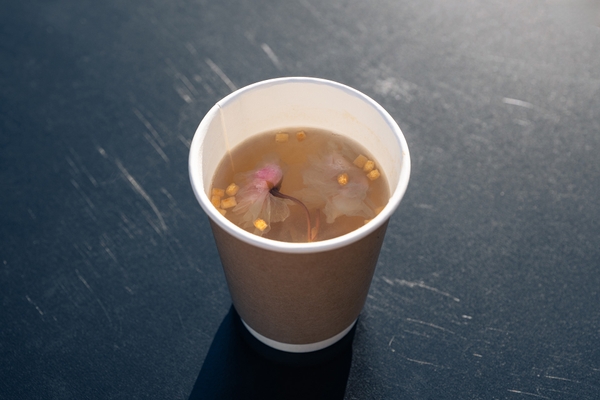 昆布茶ベースに桜風味を加えた一杯。あられがアクセントとなり、春の香りと伝統の味わいをお楽しみいただけます。