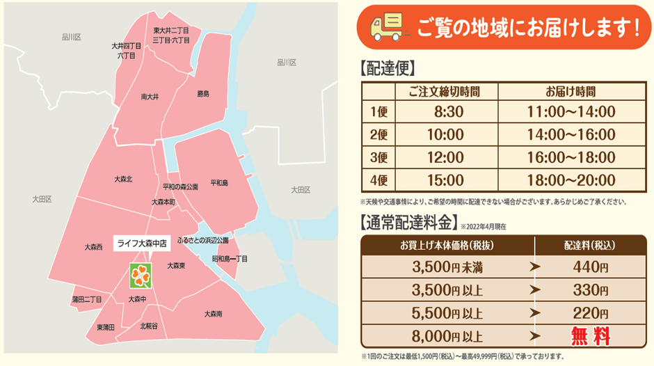 “おいしい” “ワクワク” “ハッピー” をお届けするライフコーポレーションは、7月26日(水)より大森中店で「ライフネットスーパー」のサービスを開始しました。