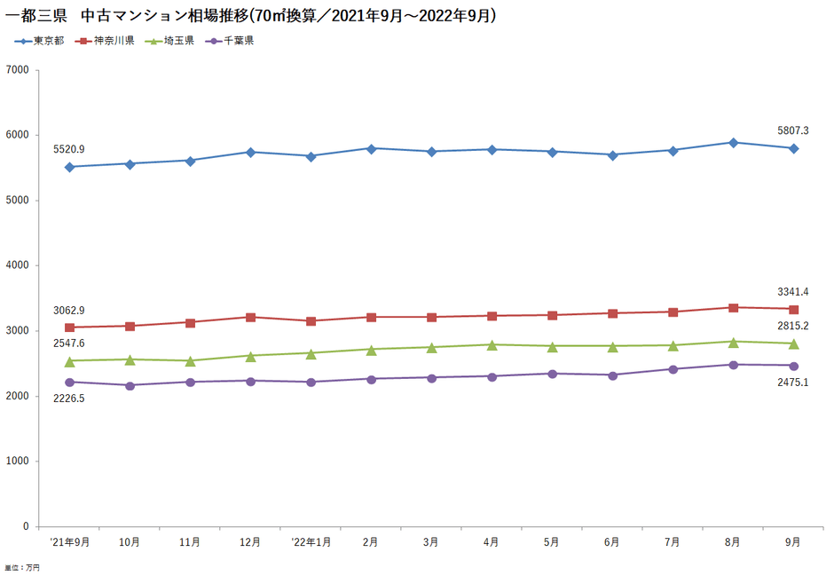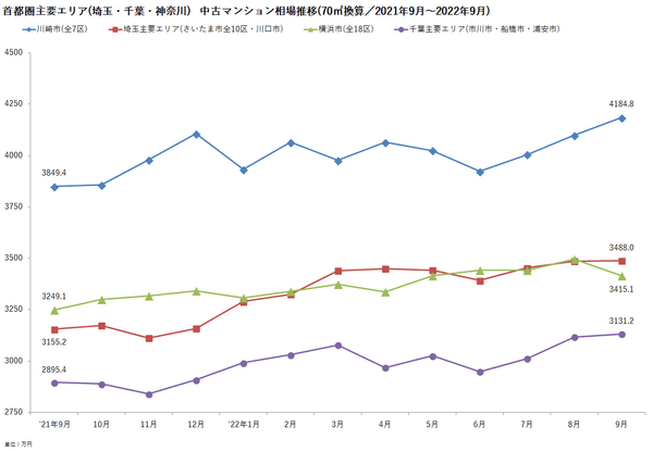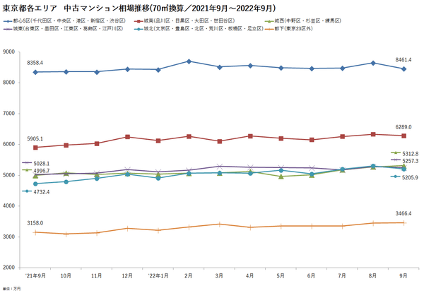 ■首都圏主要エリア 中古マンション相場推移(2021年9月~2022年9月)