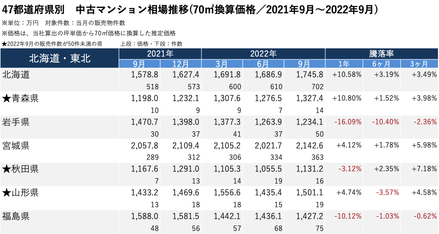 ■47都道府県別 中古マンション相場推移(2021年9月~2022年9月)