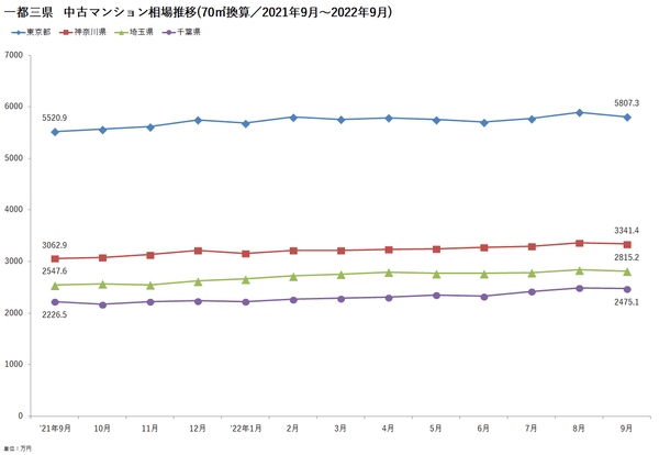 「マンションレビュー」2022年9月 全国主要エリア/47都道府県 中古マンション相場推移を発表