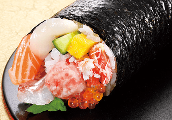 北海道産帆立が入った具だくさんの海鮮太巻。