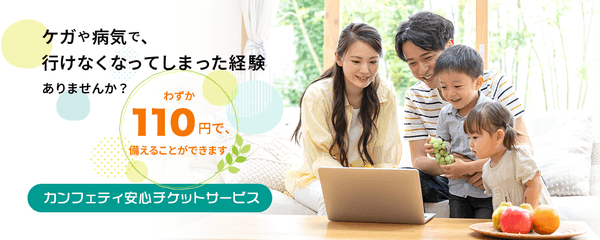 チケット購入後、チケットの金額に関わらず、一律1枚110円(税込)にてお申し込みいただくと、万が一の際にはチケット代金の全額が補償されます。補償適用条件も一部見直しを行い、より幅広い状況での補償が可能になりました。