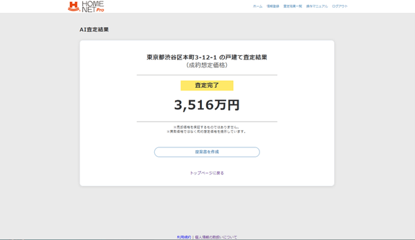 不動産仲介会社向け業務支援サービス 『HOMENET Pro(ホームネットプロ)』 《戸建て》 AI査定・提案書作成 機能をリリース