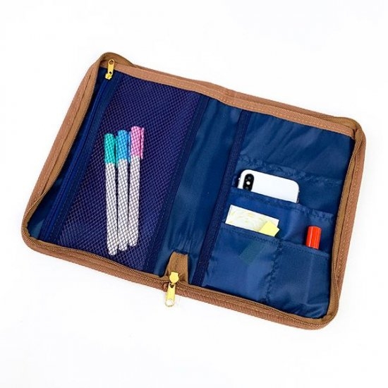 スマートフォンや文房具などがしっかり入ります♪名刺やカードも収納出来て左右のポケットにはA5サイズまでのノートや手帳を挟めるから、本当にマルチな万能ケースとして大活躍☆