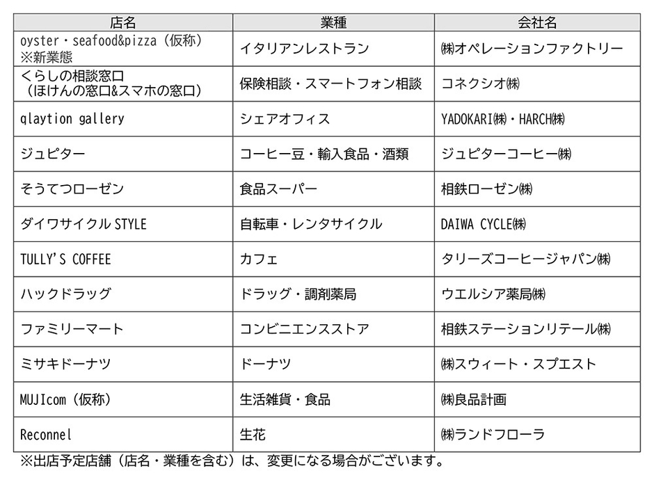 2022年12月に「星天qlay(ホシテンクレイ)」第1期オープン【相鉄アーバンクリエイツ・相鉄ビルマネジメント】