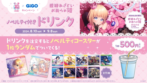 株式会社GENDA GiGO Entertainment(本社:東京都港区 代表取締役社長:二宮 一浩 以下当社)は2024年8月10日(土)より、GiGOグループのお店におきまして「HoneyWorks」がプロデュースするアイドル「mona」の2ndアルバム『超絶あざといお前らの姫』の発売を記念したキャンペーンを開催いたします。
