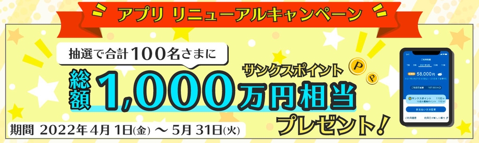 LIFE-Web Deskアプリでログインされた方の中から抽選で合計100名さまに総額1,000万円相当のサンクスポイントをプレゼント!