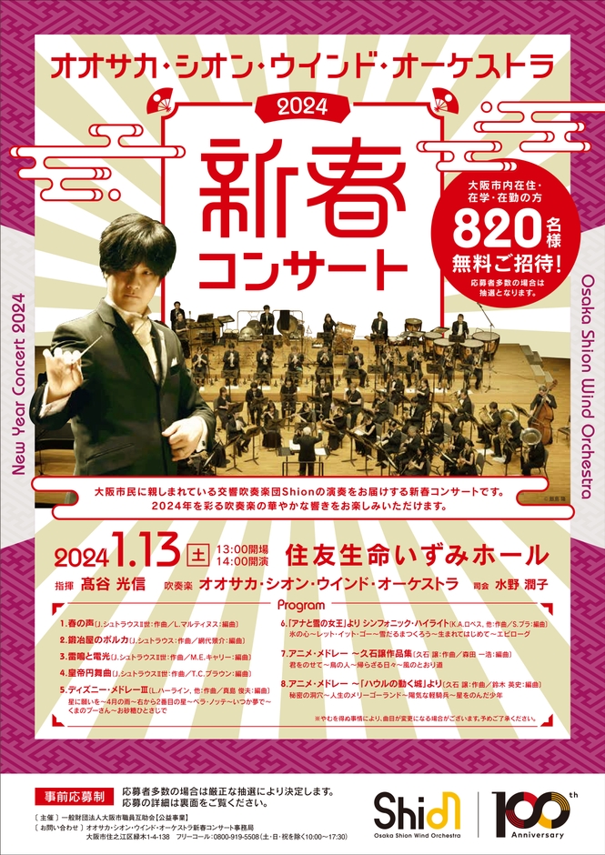 大阪市内在住・在学・在勤の方820名様を無料ご招待‼️「オオサカ・シオン・ウインド・オーケストラ 新春コンサート」