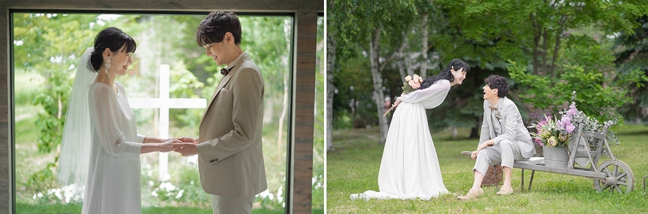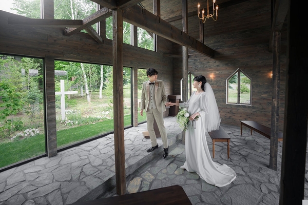 敷地内には、おふたりでゆったりと撮影することはもちろん、ご家族やご友人を招いての撮影もできる、独立型のチャペルが登場。緑に囲まれ木の温もりを感じるチャペルで、結婚式と同じように、指輪の交換や結婚証明書へのサイン、親御様へ感謝の気持ちを伝える場を設けるなど、ウェディングセレモニーも行えます。