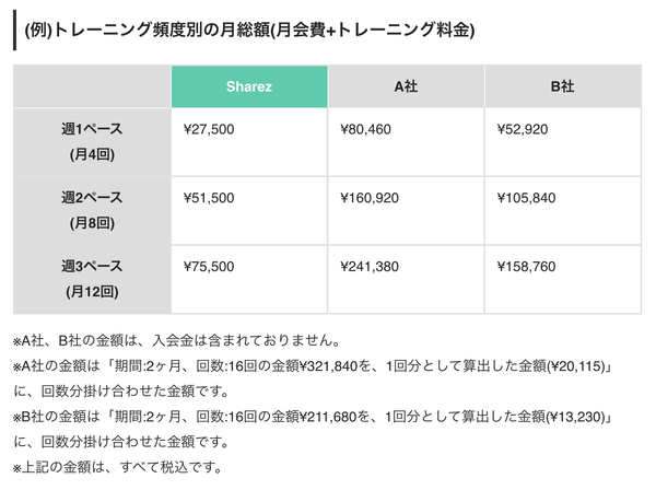 ・トレーナーの実績や特徴によって価格が異なる点
