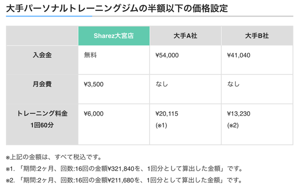 ・他社よりも低価格帯でパーソナルトレーニングを受けられる点