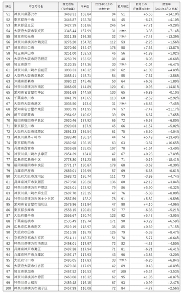 2021年10月の対象件数(当月に販売履歴のある物件数)が15件以上ある市区町村が対象。