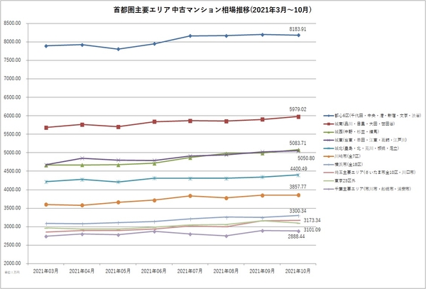 ■主要エリア 中古マンション相場推移(2021年3月~10月)
