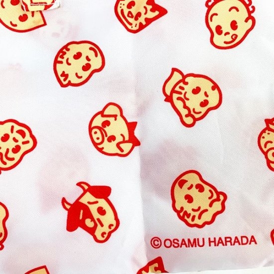 このところ人気の幅広タイプのエコバッグに、オサムグッズのデザインも加わりました。ジルやジャックたちの顔が総柄になっていて、赤いアクセントカラーもキュートなデザインです。