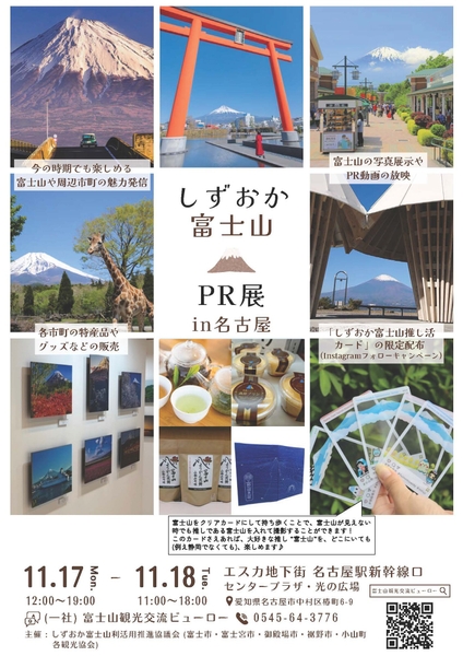- 内容:富士山の写真展PR動画と周辺市町の魅力発信、特産品グッツの販売「FUJI HINOKI MADE eye wear」の展示即売会