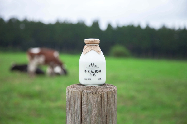 ⑤自社で大切に育てた牛から採れる牛乳は、「さっぱりしているのにコクがある」唯一無二の味わいが特徴です。