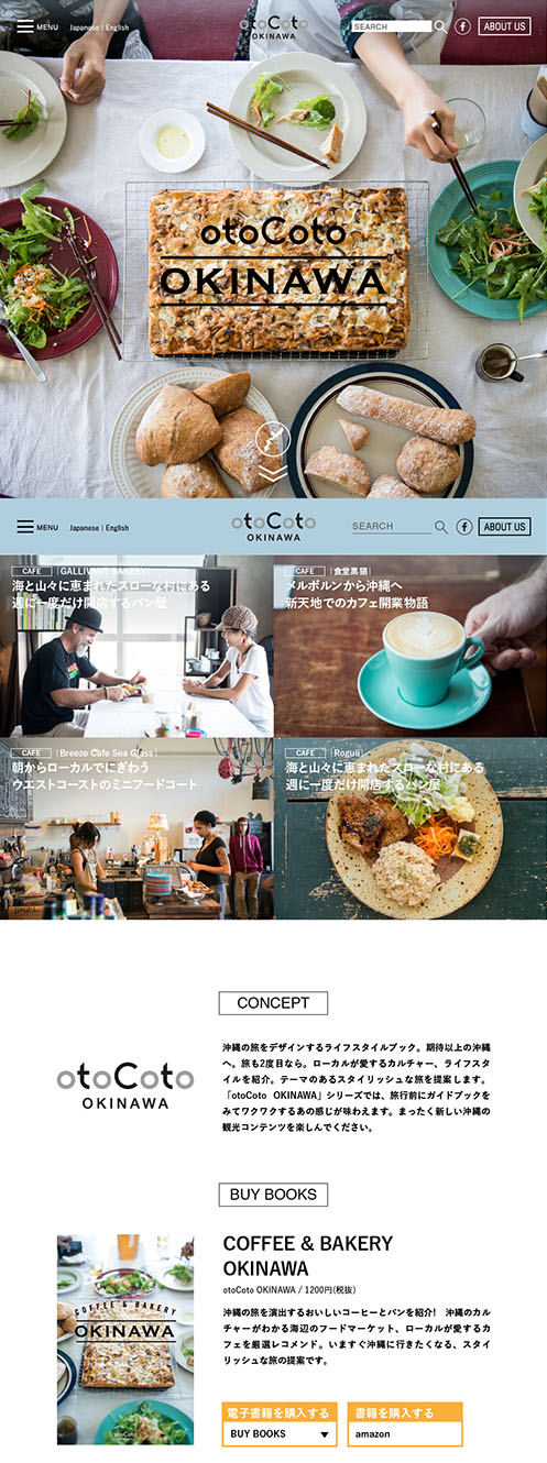 otoCoto OKINAWA編集部は、ローカルに愛される47店のカフェを、すべて現地取材・撮影の上で紹介した『COFFEE & BAKERY OKINAWA』をはじめ、3冊の沖縄本をリリースしています。現地の編集部ならではの丁寧な取材とスタイリッシュなデザインが好評をいただいています。