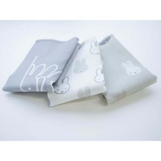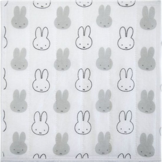 グレーの生地に、ミッフィーのお顔が総柄になったデザインのかや織りふきんが3Pセットで登場です。