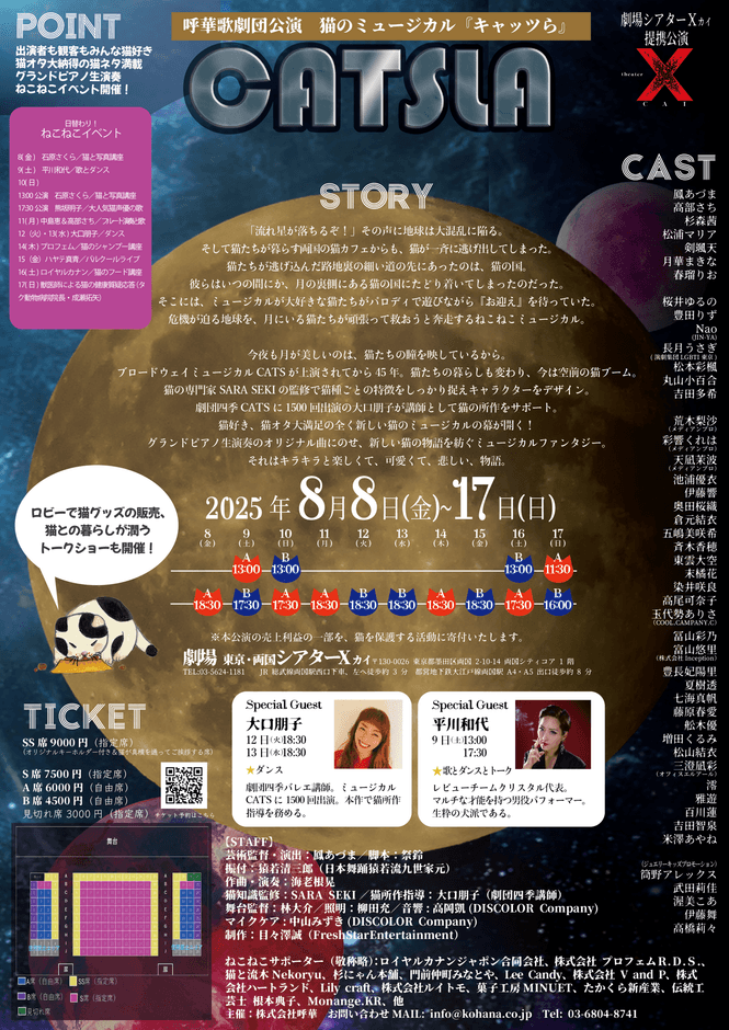 呼華歌劇団(こはなかげきだん)主催、新しい猫のミュージカル『CATsLa』が2025年8月8日 (金) 〜 2025年8月17日 (日)に両国 シアターΧ(シアターカイ)(東京都 墨田区 両国 2-10-14)にて上演されます。
