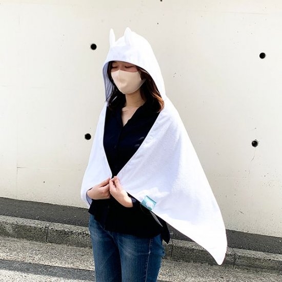 真っ白でふわふわな素材のタオルで、しかもフード付き。お風呂上がりに体を拭くだけでなく、羽織ることもできちゃいます。