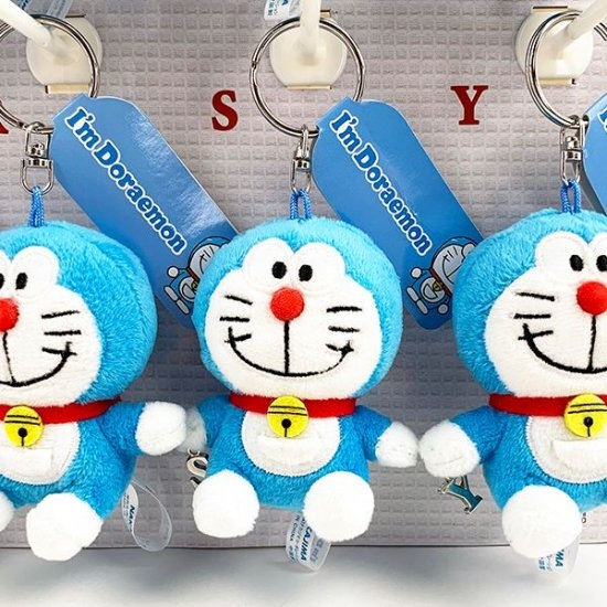 ソフトな触り心地も気持ちいい、ドラえもんのマスコットキーホルダーです。真ん丸なお顔やぽってりとした体型は、いつものドラえもんですね♡上部にキーリングがついていて、キーホルダーとしてお使いいただけます。