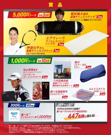 ※お1人様何回でもご応募いただけます。ただし、1回のご応募につき、選択できる賞品は最大2種、各15口までとさせていただきます。