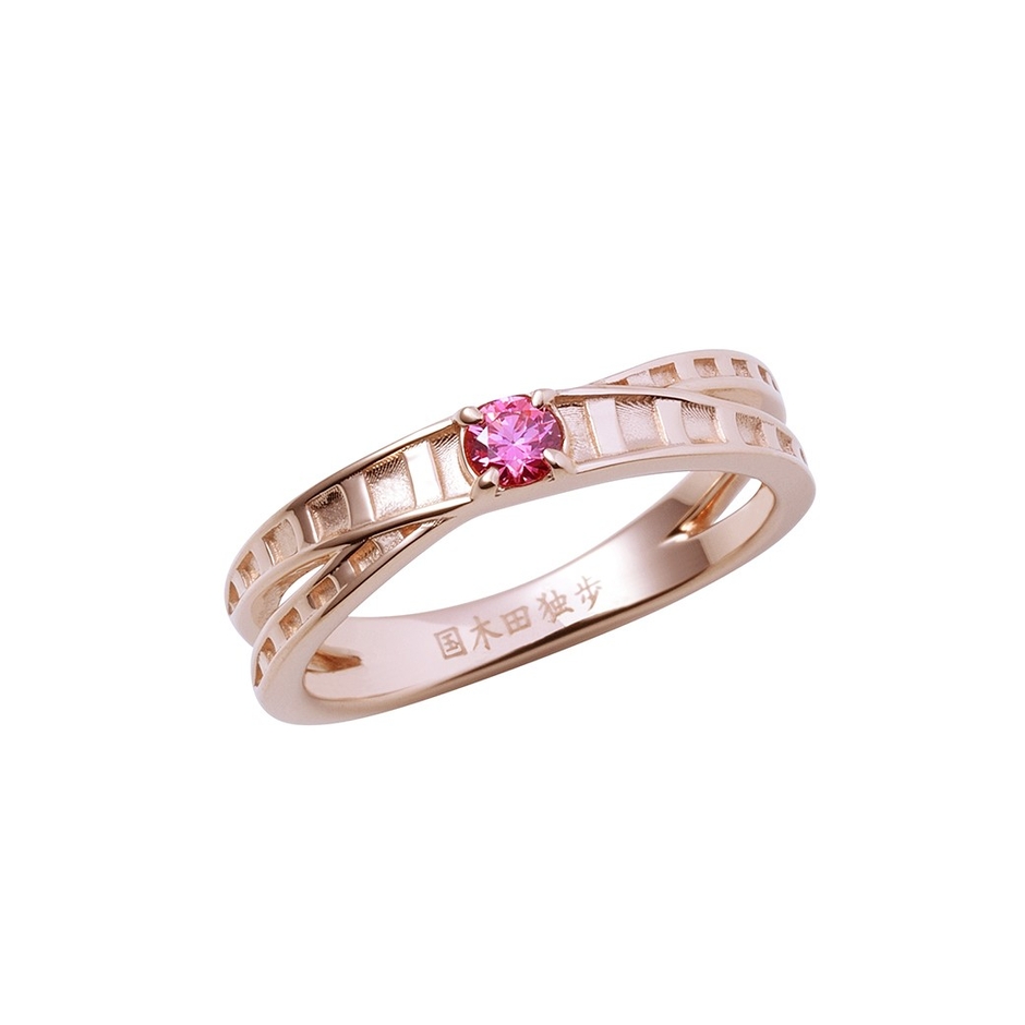 ピンクゴールドコーティングを施した表面にはイメージカラーストーン、