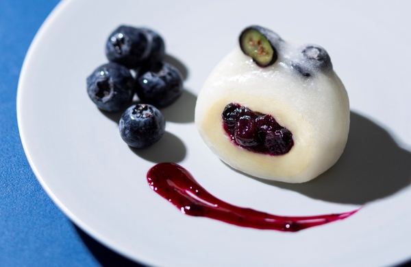 フランス産クリームチーズをたっぷり使用したさっぱりながらも濃厚なチーズあんで、甘酸っぱい果実入りのブルーベリージャムを包んだ6月限定販売の大福です。ブルーベリーの弾けるおいしさを最大限に楽しめるよう手包み製法を採用しています。