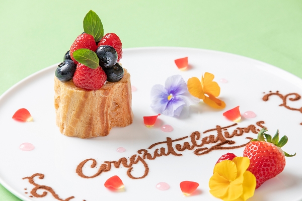 ビュッフェレストランでは、夕食時にサプライズプレゼントとして「卒業記念デザートプレート」を用意します。家族みんなが満開の笑顔になる瞬間を記念写真としてカメラにおさめられます。