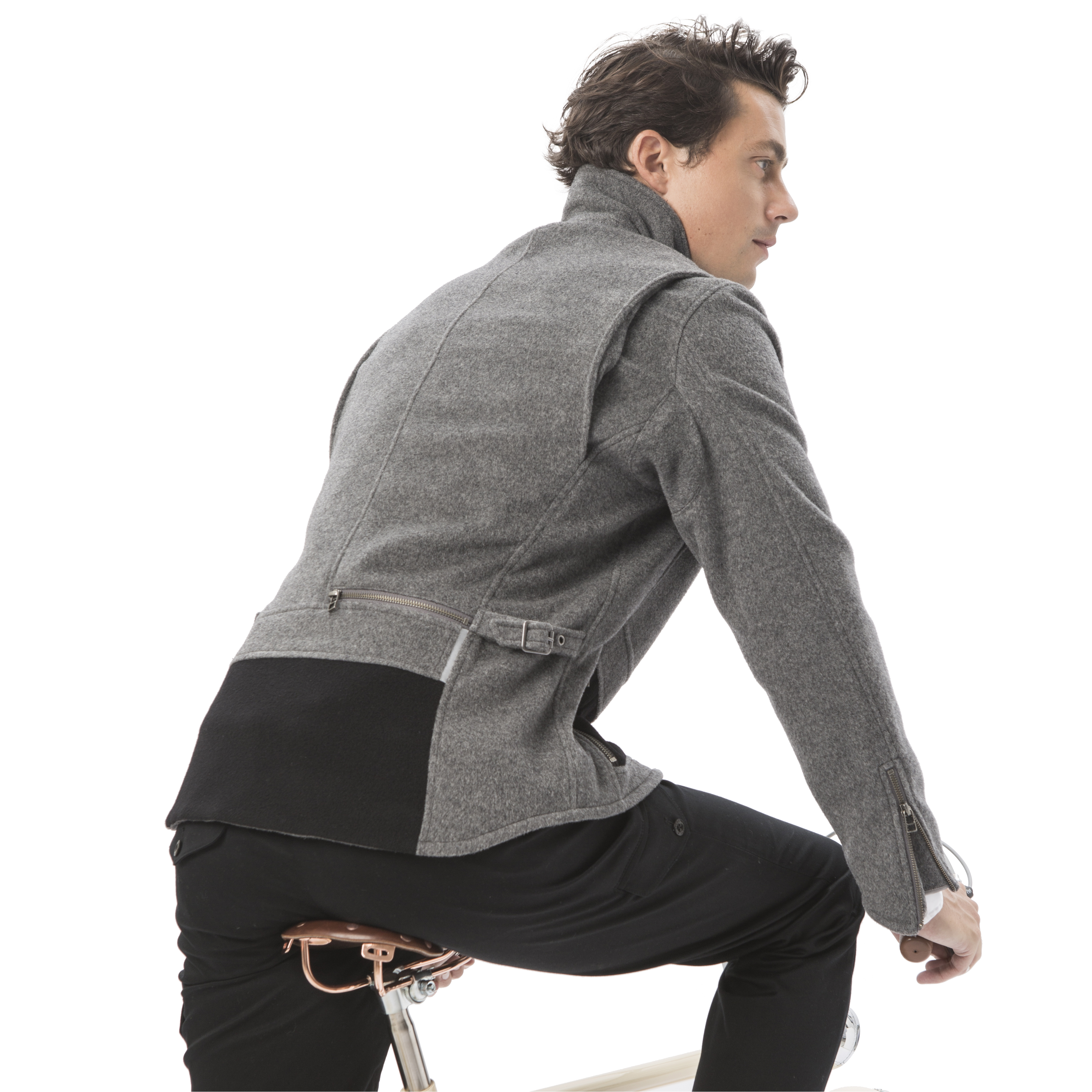 自転車通勤で前傾姿勢のライディングポジションをとっていても、オフィスでデスクワークに勤しんでいても、仕事帰りにバーでの一杯を楽しんでいても、「LIGNE 8」のアイテムは一日のどの場面にもなじむデザインでありながらも、動きのある場面にも応じた機能性を兼ね備えています。