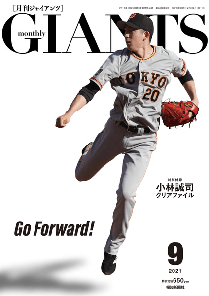 「スポーツ報知」を発行する報知新聞社(代表取締役社長・依田裕彦)は7月21日から順次、全国の書店、オンライン書店などで読売巨人軍監修のファンマガジン「月刊ジャイアンツ」2021年9月号を発売します。A4版88ページオールカラー、小林誠司捕手クリアファイルが特別付録で、特別定価650円(税込)です。書店での取り寄せ可能。お近くのYC(読売新聞販売店)でもご注文を承ります。読売巨人軍公式通販サイト「ジャイアンツオンラインストア」、ECサイト「ショップ報知」でも購入できます。