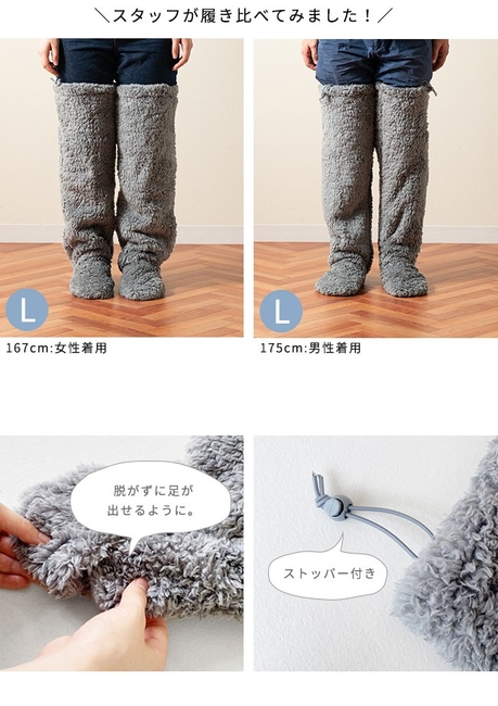 ふわふわの生地が足元から温めるロングカバーソックス。毛足の長い素材が、空気層を作り、閉じ込めるため履いてすぐ暖かさを実感。
