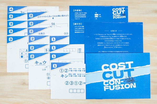 Mystery for You制作コスト削減のため、内容物の封筒はすべて無くしました。本来封筒によって分けられているべきステップごとの謎が最初からすべて見えてしまっている状態で、予期せぬバグが発生する可能性があるため、ステップ1から順番に解いてください。そんな設定も内容物も"コストカット"された今作の謎ですが、解きごたえはたっぷり。最後には驚きの展開が待っています。