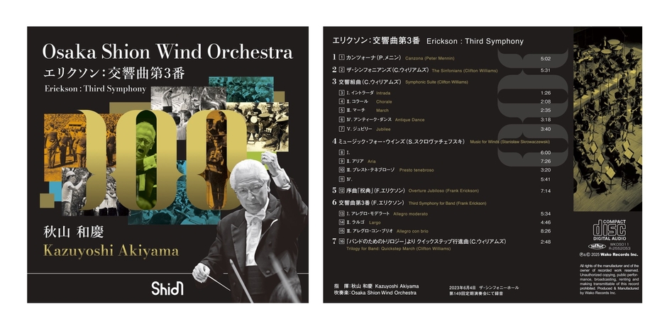 日本で最も長い歴史と伝統を誇る交響吹奏楽団、Osaka Shion Wind Orchestraを有する公益社団法人 大阪市音楽団(本社:大阪市住之江区/理事長:石井徹哉)は、同楽団の芸術顧問を務め、没後に名誉芸術顧問となった秋山和慶がShionで最後に指揮を務めたCD『エリクソン:交響曲第3番』のリリースを決定いたしました。
