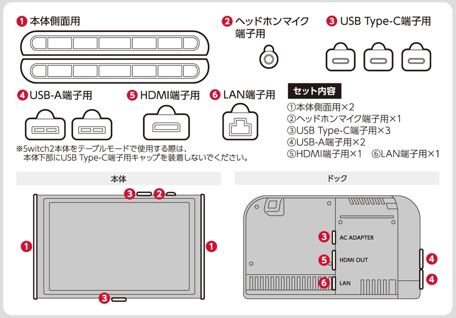 ■セット内容: 本体側面用×2、ヘッドホンマイク端子用×1、USB Type-C端子用×3、USB A端子用×2、HDMI端子用×1、LAN端子用×1、