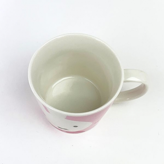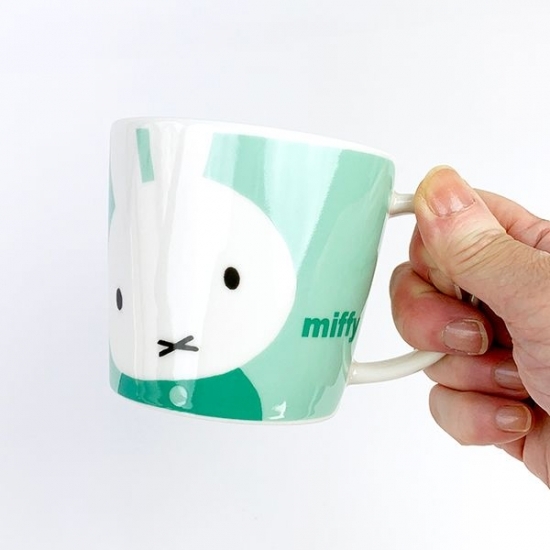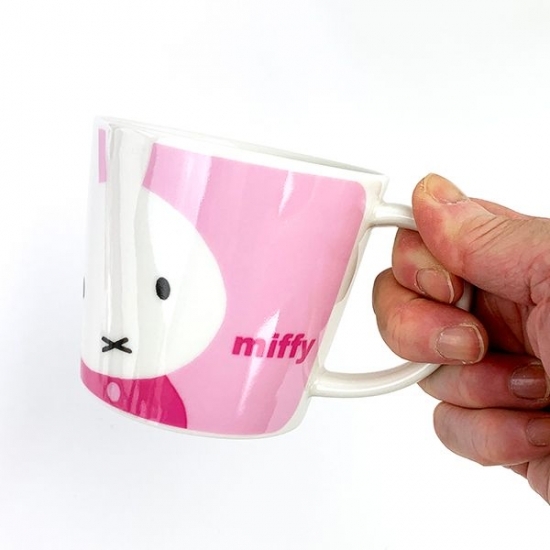 ミッフィーが交互に並んだデザインで、どこから見てもかわいいマグカップです。飲み口も広めなので、スープカップなどにもピッタリ♪