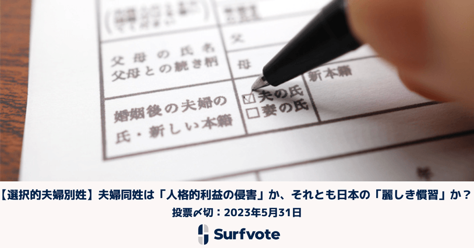 Surfvoteで考える「【選択的夫婦別姓】夫婦同姓は『人格的利益の侵害』か、それとも日本の『麗しき慣習』か?」