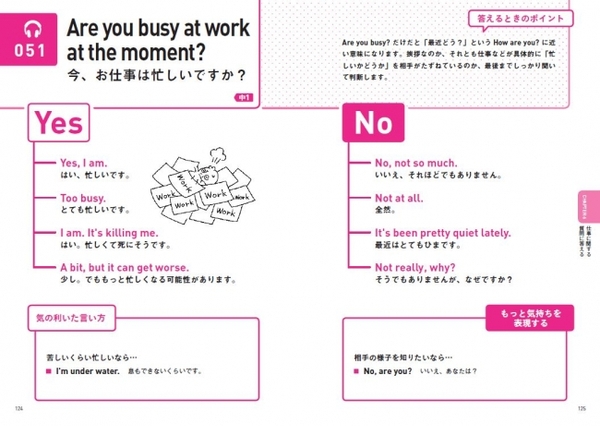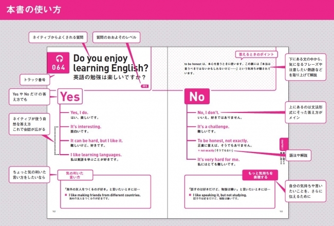 この本にはネイティブが日頃使う質問や、日本人にするであろう質問が、合わせて100掲載されています。答えは単なるYes だけの答えと、No だけの答えに加えて、中学校で習った基本的な答え方を最初に載せています。