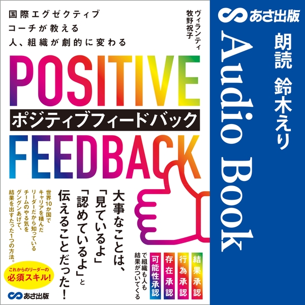 株式会社あさ出版(代表取締役:田賀井弘毅、所在地:東京都豊島区)は、世界最大級のオーディオブック及び音声コンテンツ制作・配信サービスであるAmazon Audibleにて、ヴィランティ 牧野 祝子 著『国際エグゼクティブコーチが教える 人、組織が劇的に変わる ポジティブフィードバック』( https://amzn.t )の配信を2022年7月15日に開始いたします。