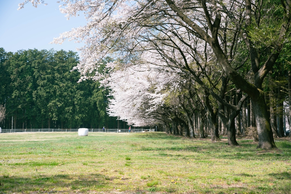 11,000㎡の開放的な芝生広場からは、約200本のソメイヨシノ等が並ぶ桜トンネルが見えます。牧場内の森林から移植されたケヤキやモミジなどをはじめ、50種以上の植栽が施された癒しの新ランドスケープは四季折々の自然を感じるスポット。天然芝の上でピクニックを楽しんだり、春の陽射しを浴びながらリラックスできる空間です。