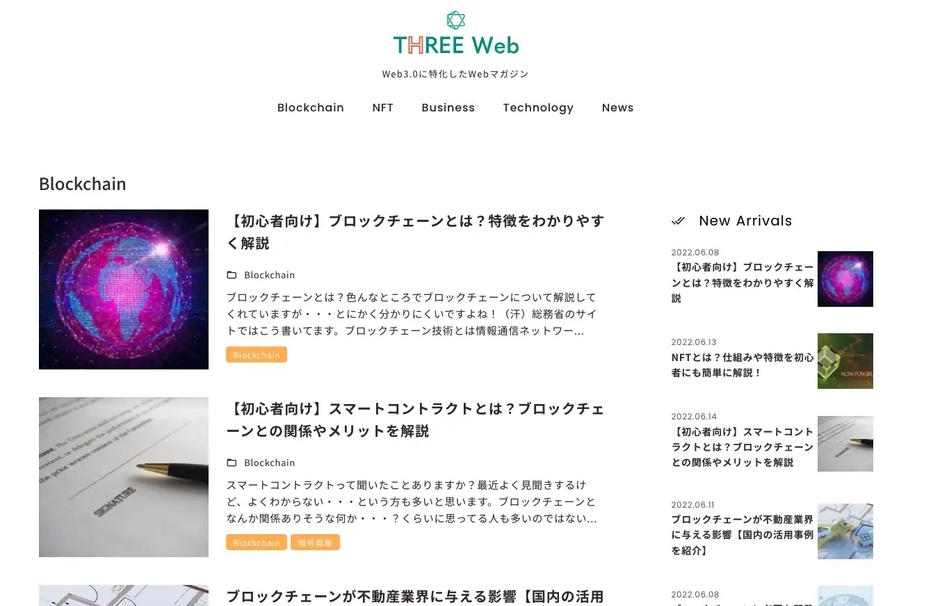 弊社のThree Webではブロックチェーン、NFT、スマートコントラクトやDeFiについてわかりやすく解説する記事や、Web3.0最新情報をお伝えする記事を毎日共有することで、Web3.0の一般社会へ浸透に貢献します。