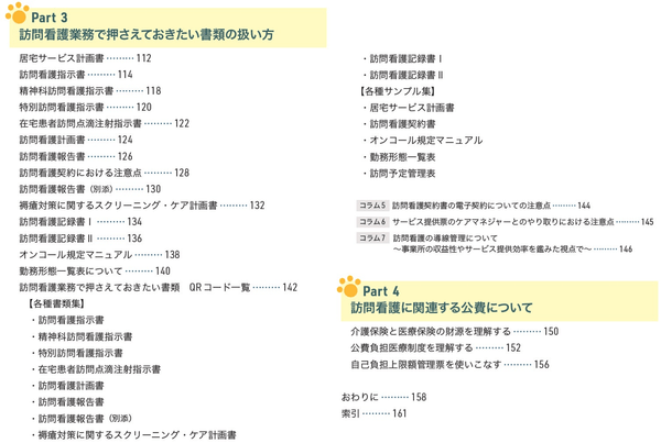 訪問看護で必要となる各種書類について、とくに「押さえておきたい」ものを取り上げ、記載例や記載時のポイントなどを解説しています。各書類はQRコードからダウンロードできます。